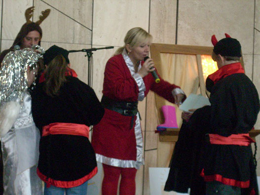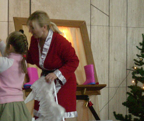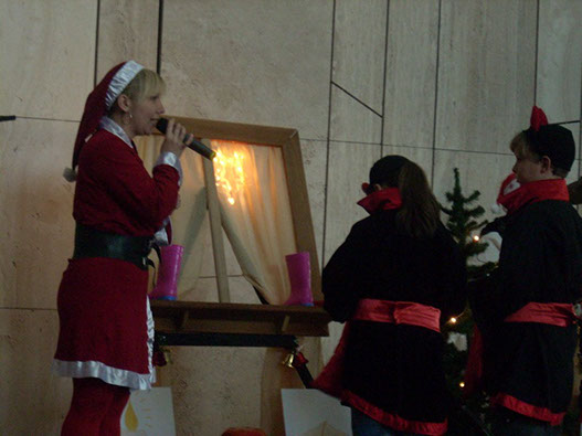 Az Angyal és a Rénszarvas elhozza a Mikulás mesekönyvét és a Mikulás érkeztéig, együtt lapozzák fel a jelenlévő gyerekekkel. Minden oldal egy újabb dalt és játékot rejt . (Száncsengő,Boszorkány vagy Királylány,Hull a pelyhes)