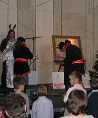 Az Angyal és a Rénszarvas elhozza a Mikulás mesekönyvét és a Mikulás érkeztéig, együtt lapozzák fel a jelenlévő gyerekekkel. Minden oldal egy újabb dalt és játékot rejt . (Száncsengő,Boszorkány vagy Királylány,Hull a pelyhes)